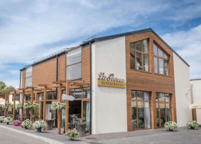 Zapomnieliśmy dodać, że restauracja mieści się w ścisłym centrum miasta. Dosłownie kilkadziesiąt kroków dzieli ją od rynku głównego w Oświęcimiu. Jest to więc lokalizacja idealna, ponieważ z jednej strony pozwala po kolacji przejść się na spacer po starówce, a z drugiej strony jest umiejscowiona lekko na uboczu, dzięki czemu przy jedzeniu możemy odciąć się od miejskiego zgiełku i turystycznego hałasu.